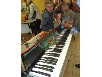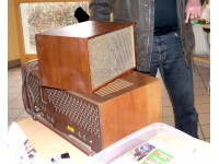 Parmi les objets apportés pour réparation, à coté des habituels aspirateurs et machines à café, notons un piano électronique et une antique « TSF »